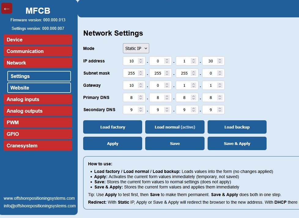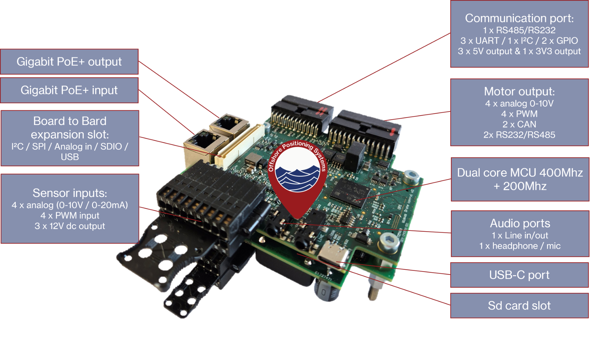 This board has been developed to be used as a motor/rudder controlboard for drones / ROV's / ROTV's but can also be used in remote control stations to interface joysticks over ethernet towards a second MFCB to remotely controll the vehicle.