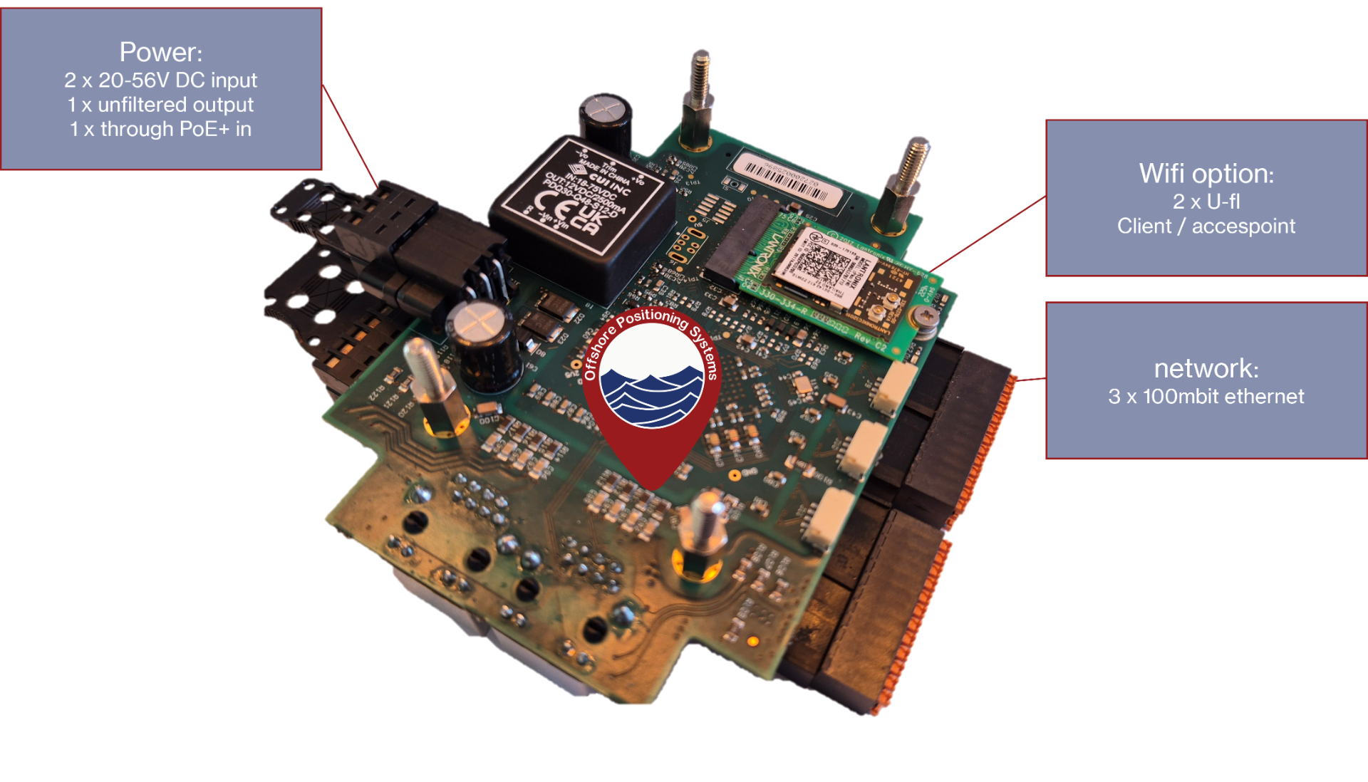 - 3 x 100Mbit LAN through SM04B-GHS-TB connector (for example to connect camera / ardupilot / radio's equipped with ethernet connection)